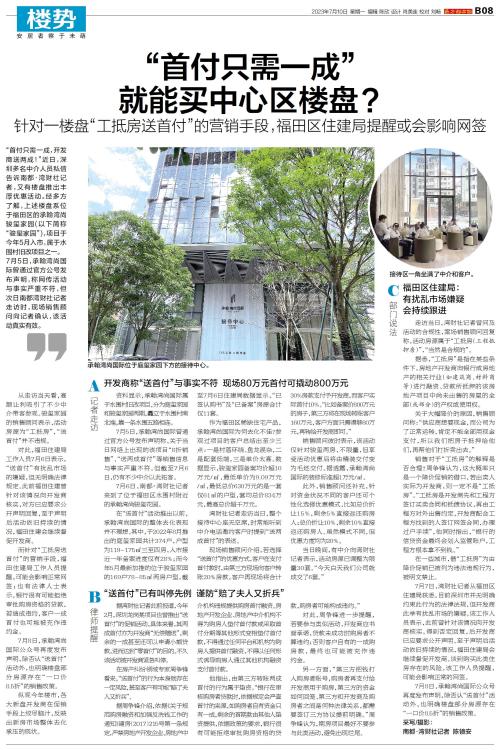 “首付只需一成,开发商送两成!”近日,深圳多名中介人员私信告诉南都·湾财社记者,又有楼盘推出丰厚优惠活动。经多方了解,上述楼盘系位于福田区的承翰湾尚骏玺家园(以下简称“骏玺家园”),项目于今年5月