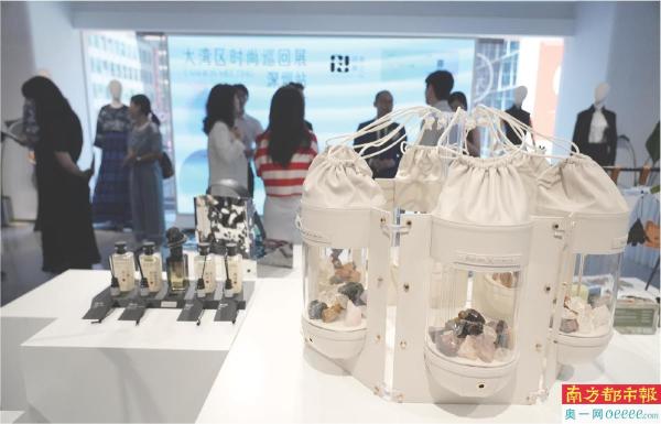 此外,香港袜子与针织品牌MOODLABBYLORRAINE与佛山街头品牌CHILLHIGH合作,以广东地区传统的醒狮表演为设计主题,一下子就能抓住观众眼球。香港皮具品牌POMCH与广州香氛品牌RAYLABO合作的装置艺术以丝绸之路为灵感,装置的造型来源于古时丝绸之路上装运茶叶的背囊,而6个“背囊”中存放着特制的6种气味。香港独立时装品牌FAVEBYKENNYLI与广州独立小众设计师品牌PIECEOFGROUND合作,利用可回收材料制作手袋,宣扬环保理念。在PIECEOFGROUND主理人孙汉看来,内地有面料辅料到生产加工的完善产业链,香港有很多出色的设计,双方合作可以共享这些资源,让更多更好的产品落地。