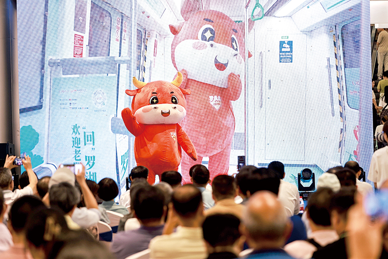 罗湖城区新IP“罗犇犇”亮相开幕式,在地铁专列“欢迎老朋友‘回’罗湖,新朋友‘来’罗湖”。 主办方供图