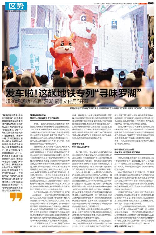 罗湖城区新IP“罗犇犇”亮相开幕式,在地铁专列“欢迎老朋友‘回’罗湖,新朋友‘来’罗湖”。 主办方供图 “罗湖桥两地情牵,你和我血脉相连”,随着由深港青年深情录制的主题