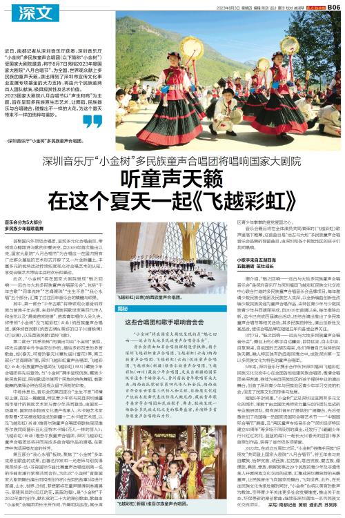 近日,南都记者从深圳音乐厅获悉,深圳音乐厅“小金树”多民族童声合唱团(以下简称“小金树”)受国家大剧院邀请,将于8月7日亮相2023年度国家大剧院“八月合唱节”,为全国、世界观众献上多民族的童声天