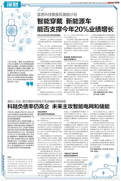 7月30日晚,“果链”龙头蓝思科技(300433)披露了2023年限制性股票激励计划(草案),本次激励计划拟授予对象包括公司董事(不含独立董事)、高级管理人员、核心骨干员工共计3097人,授予价格