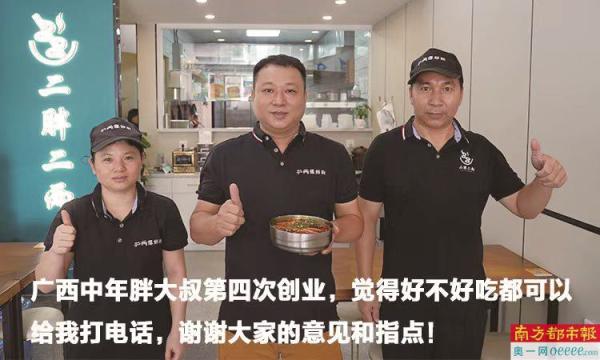 “十几岁就出来深圳学厨,之前创业也是做不同品类的餐饮店,但经营经验不太丰富,选址啊、运气啊可能都没有那么好,就是没能做下去。老婆虽然表面老是说我,但其实很心疼我,一直都支持我。”老于介绍,这次创业,他选择了老家广西的螺蛳粉,做了自己的品牌小店“二胖二两”,员工都是广西人,也能保证口味。
