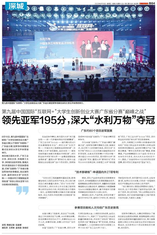 8月16日,第九届中国国际“互联网+”大学生创新创业大赛广东省分赛(以下简称“互联网+”广东省分赛)冠军争夺赛暨闭幕式在深圳大学元平体育馆举行。 来自南方医科大学、广东工业大学、深圳大学、华南理