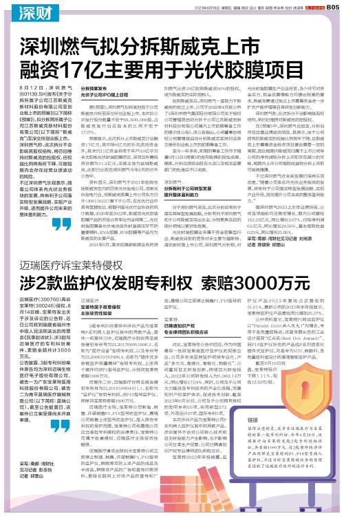 深圳燃气拟分拆斯威克上市 融资17亿主要用于光伏胶膜项目