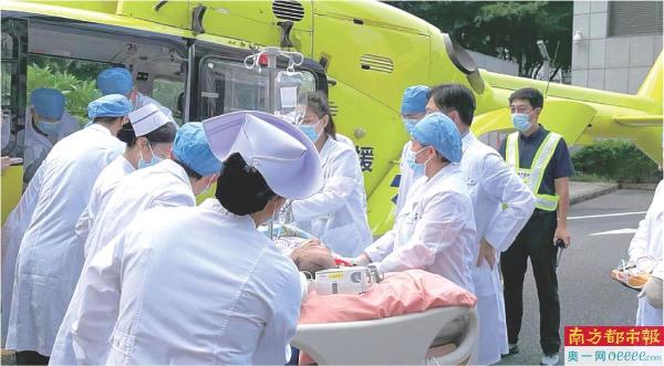 南都讯 记者张艳丽 通讯员陈其彬 “到广州了吗?”随着直升机轰鸣声刚刚停歇,59岁的郑叔意识清醒,询问身边的医护人员。