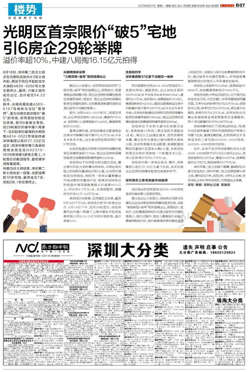 光明区首宗限价“破5”宅地引6房企29轮举牌