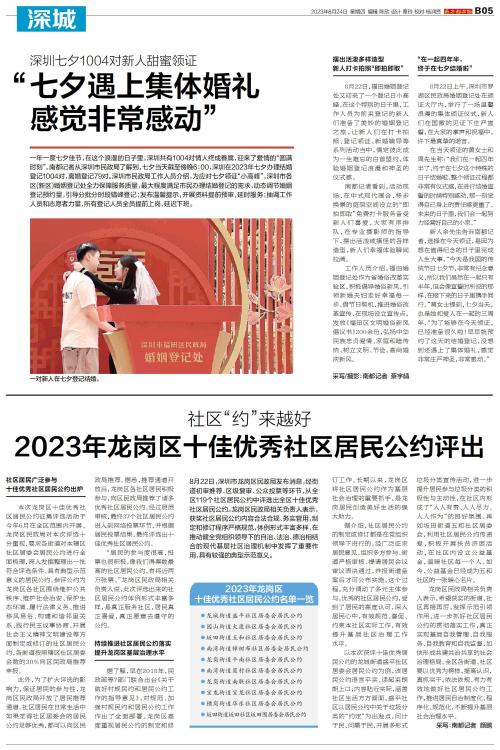 一年一度七夕佳节,在这个浪漫的日子里,深圳共有1004对情人终成眷属,迎来了爱情的“圆满时刻”。南都记者从深圳市民政局了解到,七夕当天截至傍晚6:00,深圳在2023年七夕办理结婚登记1004对,