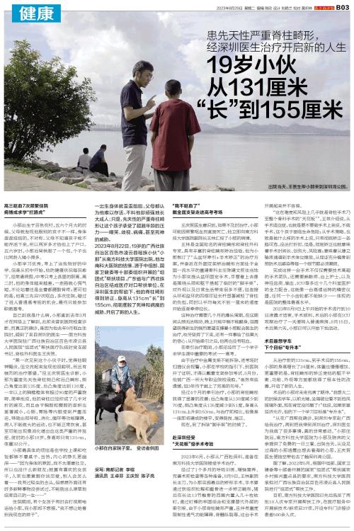 一出生身体就歪歪扭扭,父母都认为他难以存活,不料他却顽强地长大成人;只是,先天性的严重脊柱畸形让这个孩子承受了超越年龄的压力——嘲笑、歧视、病痛,甚至死神的威胁。 2023年8月22日,19岁的