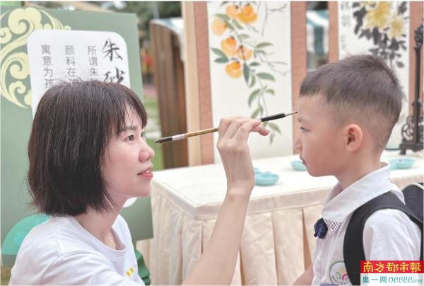 新生入学之际,莲花小学安排了古色古香的入学(入泮)仪式,包含“互正衣冠”、“行拱手礼”、“敬拜师长”、“感恩父母”、“朱砂启智”、“书写人字”、“击鼓明志”、“诵《弟子规》”等环节,在他们入学求知之时教会他们承礼、明孝、知爱、感恩、立志——据介绍,入泮礼也称开笔礼,是古时学生的入学大礼。在古代,凡是新入学的孩子,都需进行“入泮”的入学仪式。