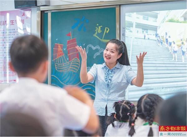 深圳一教师带领新生“开学第一课”。 南方日报记者 朱洪波 通讯员 吴金樱 摄