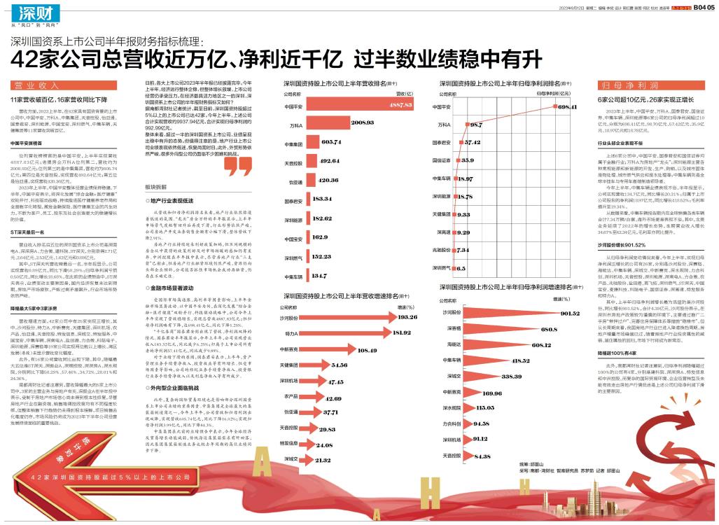 日前,各大上市公司2023年半年报已经披露完毕。今年上半年,经济运行整体企稳,但整体增长放缓,上市公司经营仍承受压力。在经济最具活力地区之一的深圳,深圳国资系上市公司的半年报财务指标又如何? 据
