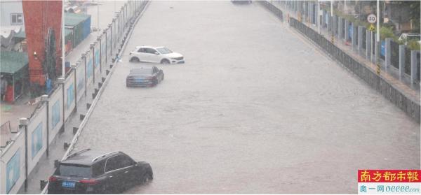 9月8日,罗湖区滨河大道交会处积水过膝,有车辆熄火。 南方日报记者 鲁力 摄