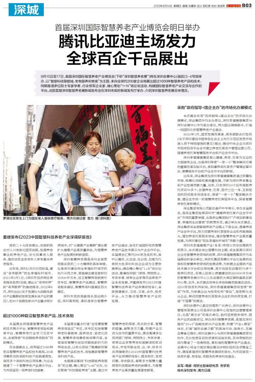 9月15日至17日,首届深圳国际智慧养老产业博览会(下称“深圳智慧养老展”)将在深圳会展中心(福田)3-4号馆举办,以“智慧科技聚鹏城,老有颐养圳幸福”为主题,来自全球约200家企业将展出超过10
