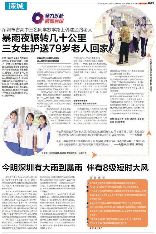 暴雨夜辗转几十公里 三女生护送79岁老人回家