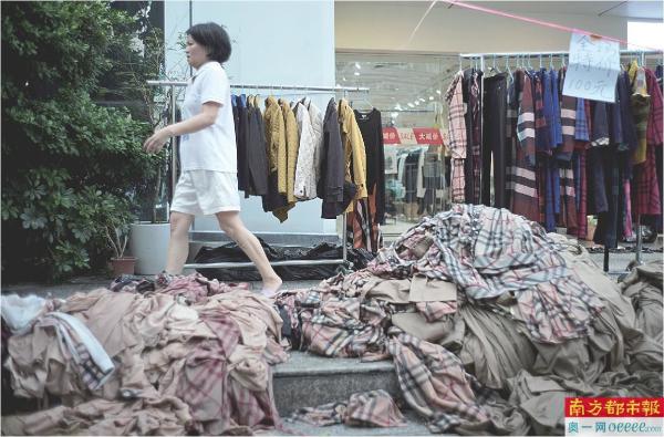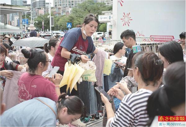 摆摊清货 9月16日,罗湖东门步行街旁的小广场,地下商场的店家正摆摊清货。