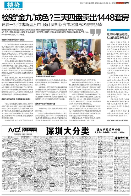楼市重现热销?刚刚过去的周末,深圳新政后首波集中推盘的项目纷纷取得了亮眼的成绩单,刷屏地产人的朋友圈。 9月15日-17日,深圳南山、福田、宝安、龙华四个项目开盘。据项目公开的销售海报和开发商披