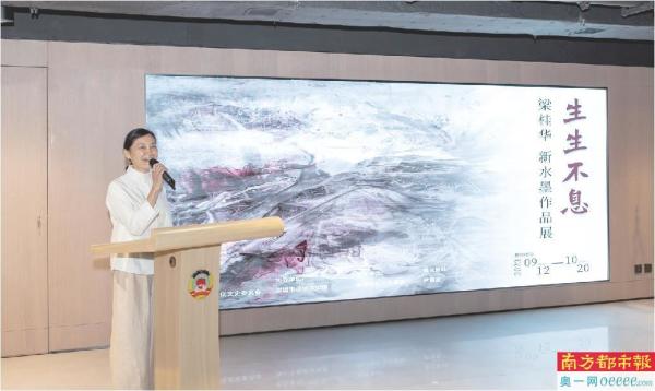呈现人与自然和谐共生的画卷,传递日新月异的都市节拍和昂然奋进的山海之歌。9月12日,《生生不息》——梁桂华新水墨作品展在深圳市政协文史馆开幕,此次展览分山海连城、缤纷都市、红树湾畔三个部分呈现,展出了艺术家梁桂华近两年创作的30多幅新水墨作品。梁桂华用水墨记录心中的美好,描绘心中的锦绣,用艺术践行绿美广东生态建设的深圳实践。深圳市政协副主席陈倩雯、乔恒利等领导及众多艺术界嘉宾出席开幕式,展览将持续到10月20日。