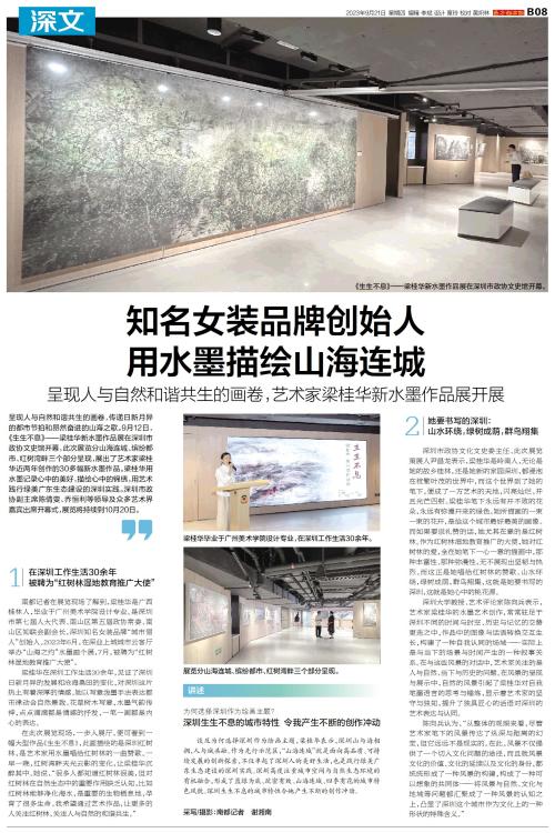 呈现人与自然和谐共生的画卷,传递日新月异的都市节拍和昂然奋进的山海之歌。9月12日,《生生不息》——梁桂华新水墨作品展在深圳市政协文史馆开幕,此次展览分山海连城、缤纷都市、红树湾畔三个部分呈现,展