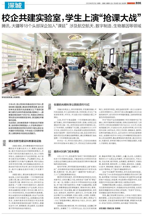 今年4月,致公党深圳市委会的《关于深入贯彻科教兴国战略、推动科学教育发展,助力深圳率先实现现代化的提案》(以下简称《提案》)被列为深圳市政协的重点提案之一。提案落实情况如何?9月21日,市政协主席
