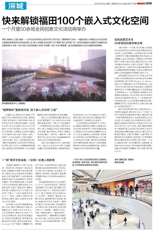 书吧、咖啡店、公园、商场……公共文化空间可以无处不在?9月19日,“星罗棋布”计划——福田区嵌入式新型公共文化空间点亮暨全民创意艺术月启动活动,在“嵌入式新型文化空间”(以下简称“嵌入式空间”)之