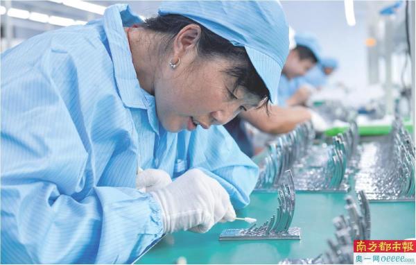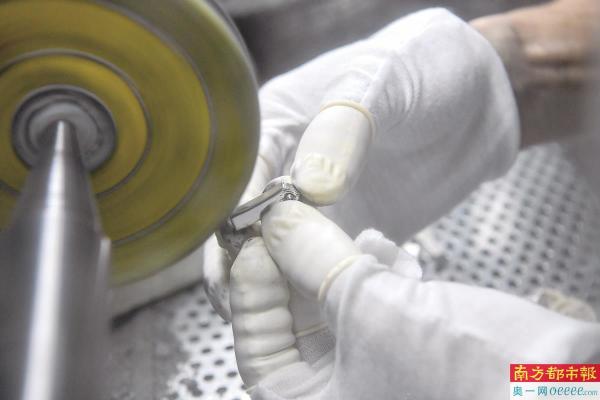 9月22日,工人在制造工厂内用棉棒清洁组装好的杭州亚运会主火炬塔纪念版摆件。