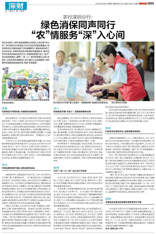 坚守为民初心,保护金融消费者合法权益,从来没有“终止符”。农行深圳分行将消保工作作为该行经营发展重点,将宣传普及作为推动消保工作的重要抓手,推进消保宣传工作走深走实,采取传统宣传与新媒体传播相结合