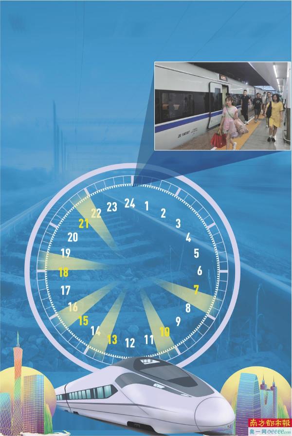 2023年10月11日零时起,深圳铁路将实行新的列车运行图。广州东站往返深圳站开行一站直达城际列车12列。广州东站、深圳站分别于7时、10时、13时、15时、18时、21时同时对向开行列车,单程时间最短为63分钟,即可往返于广州天河与深圳罗湖之间,广深城际列车由118列增加至146列。