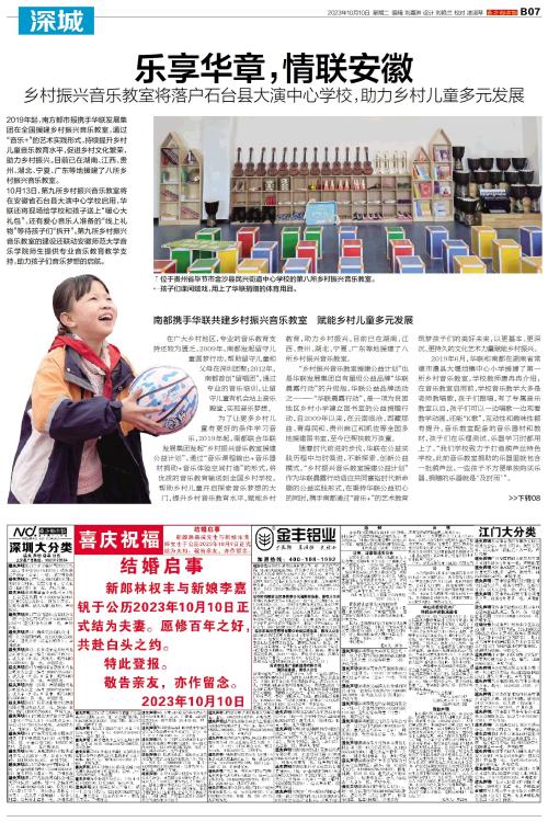 2019年起,南方都市报携手华联发展集团在全国援建乡村振兴音乐教室,通过“音乐+”的艺术实践形式,持续提升乡村儿童音乐教育水平,促进乡村文化繁荣,助力乡村振兴。目前已在湖南、江西、贵州、湖北、宁夏