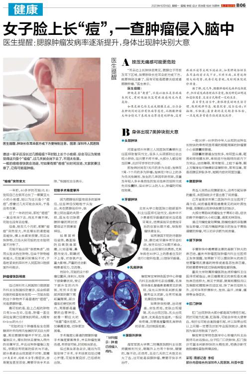 女子脸上长“痘”,一查肿瘤侵入脑中