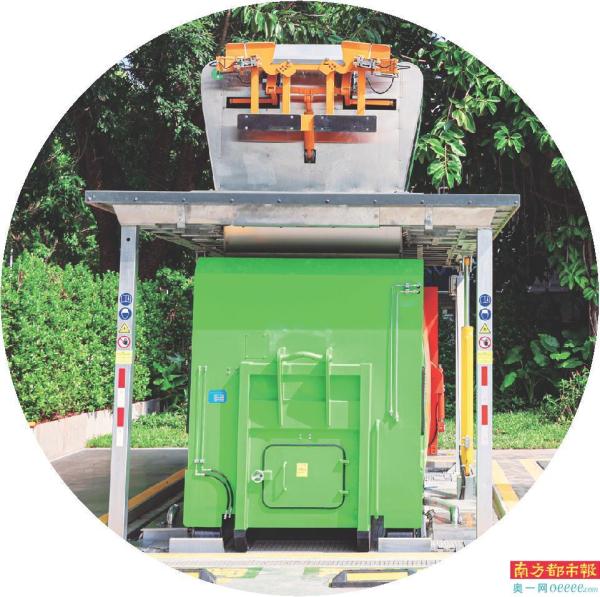 究竟是什么硬核科技可以让生态岛内看不见垃圾、闻不到气味?原来真正的高科技都藏在地下。据设备研发单位迈睿环境工程师汪鑫平介绍,地面上的两个“翻料器”相当于投放口,通过它把垃圾倒进埋藏在地下的压缩箱中,集约地面空间,位于地下的压缩箱每个有10吨的容量,配备了两套压缩箱,可以就地压缩垃圾。垃圾站设计垃圾转运量为每日50吨,设备配有三道除臭系统,能有效防止臭味外溢,并在地下密闭空间内进行全覆盖、全渗透,持续高效的自动消杀。智能地埋式垃圾站解决传统垃圾转运站的视觉、嗅觉、听觉等感官痛点,实现垃圾“无感”效果。