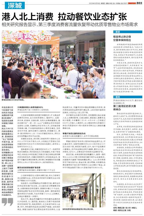 市发改委9月15日发布“《深圳市关于促进消费的若干措施》的通知”,包括优化消费环境等21条新举措。 而从今年1月内地与香港全面恢复通关以来,香港居民“北上”的热情不断升温,深圳优质零售物业市场也