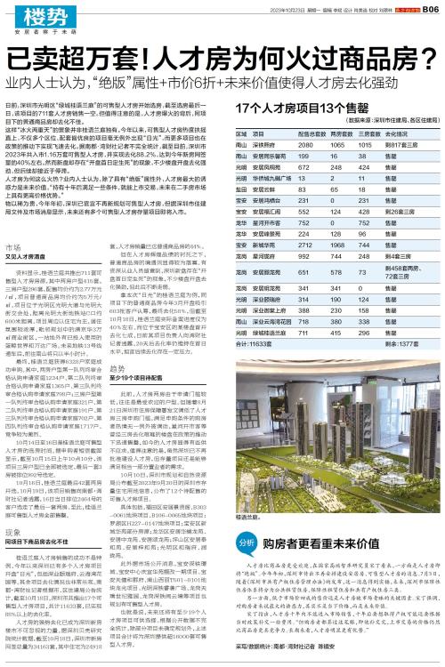 日前,深圳市光明区“绿城桂语兰庭”的可售型人才房开始选房,截至选房最后一日,该项目的711套人才房销售一空。但值得注意的是,人才房爆火的背后,同项目下的普通商品房却去化不佳。 这样“冰火两重天”