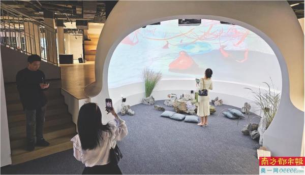 当天启用的CIC创新创意中心位于街区东侧,分为上下两层。一层以“共创+”为主题,2400平方米的空间规划了可供数创成果展示的“数字创意展厅”“球幕小剧场”以及研究、传播和实践学术成果的大师工作室等区域,为数字创意产业发展提供充足的生发、交流场所。二层则以“展演+”为主题,700平方米多功能空间,可对外提供大型会议、论坛、音乐戏剧讲座等艺文演出、文化展览等空间服务,为文化创意合作提供更多元的可能性。