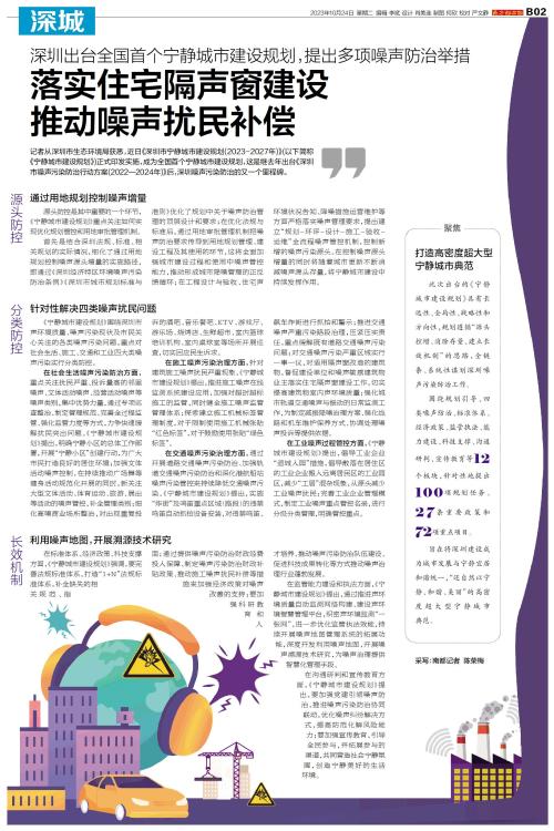 记者从深圳市生态环境局获悉,近日《深圳市宁静城市建设规划(2023-2027年)》(以下简称《宁静城市建设规划》)正式印发实施,成为全国首个宁静城市建设规划,这是继去年出台《深圳市噪声污染防治行动