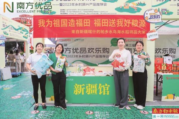 10月20日至24日,第三届南方优品欢乐购暨2023年乡村振兴产品推荐会登陆深圳市南山区欢乐海岸,活动现场设置了帮扶产品展示区、帮扶成果区、美食品尝区、创意集市与公益爱心摊位。现场展示了新疆喀什的大米,中农海稻公司董事长杨记磙教授还为在场观众介绍了海水稻项目。