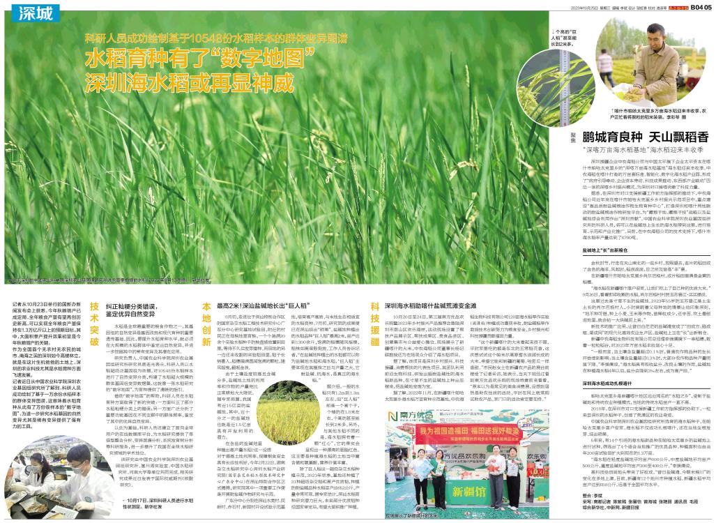 水稻育种有了“数字地图” 深圳海水稻或再显神威