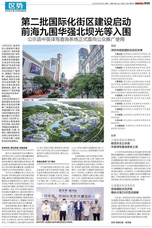第二批国际化街区建设启动 前海九围华强北坝光等入围