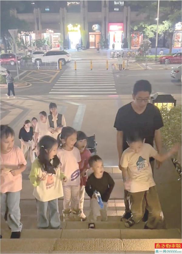 2. 多多在社区爬楼梯,周围的小朋友们给他加油打气。 视频截图