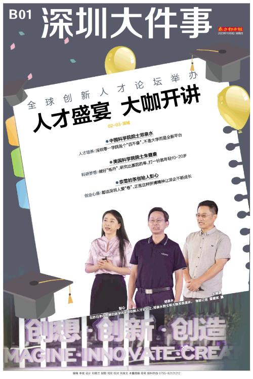 中国科学院院士郑泉水 人才培养:深圳零一学院是个“四不像”,不是大学而是全新平台 美国科学院院士朱健康 科研梦想:做好“炼丹”,研究出基因药单,打一针就年轻10-20岁 奈雪的茶创始人彭心