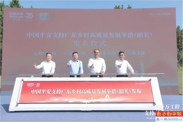 11月1日,中国平安“服务百千万工程 支持高质量发展”乡村振兴韶关行在广东省韶关市乳源县举行。当天,中国平安发布了支持广东高质量发展举措,从金融支持、保险保障、消费协销、文旅支持等四大方面,为广东发展壮大县域经济,推动乡村振兴发展和基本实现城乡社会主义现代化注入金融发展新动能。