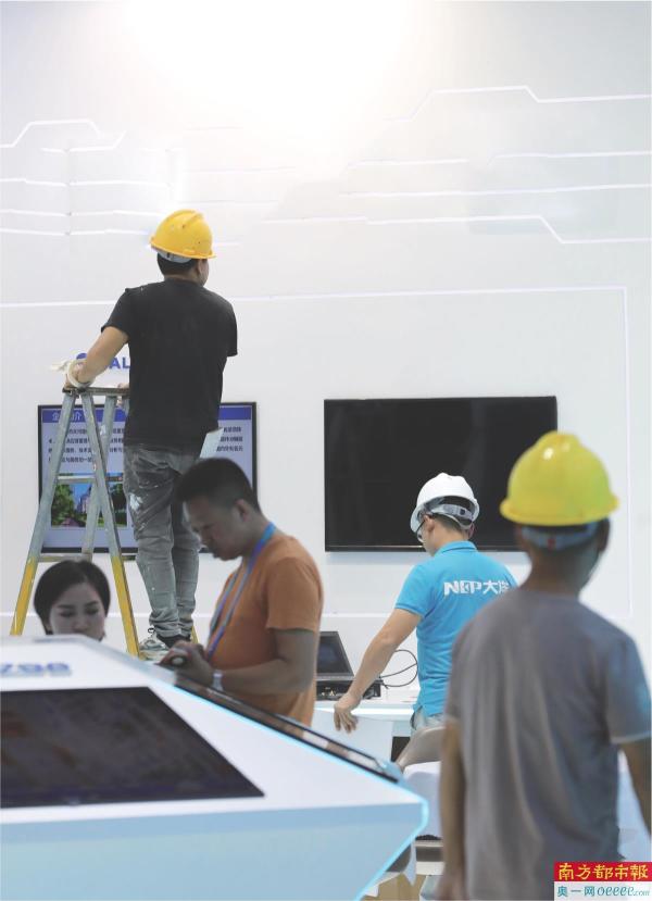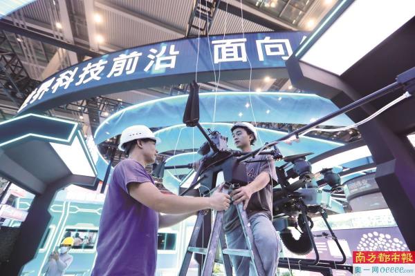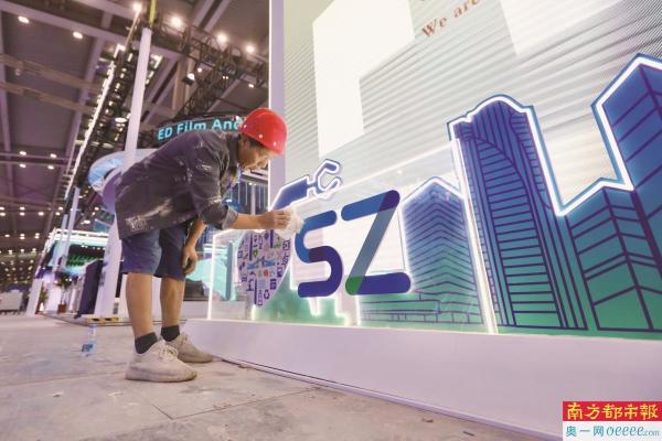 记者在高交会福田展区看到展位布置正在进行,展品已进场调试。