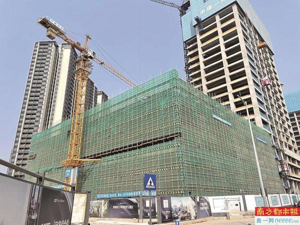 11月,有网友在社交平台发布华侨城九樾广场写字楼的脚手架已拆掉正式停工的消息。