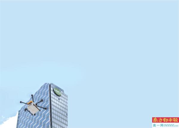 8月15日,在深圳市龙岗区,一架送餐无人机穿行在高楼大厦间。 新华社发