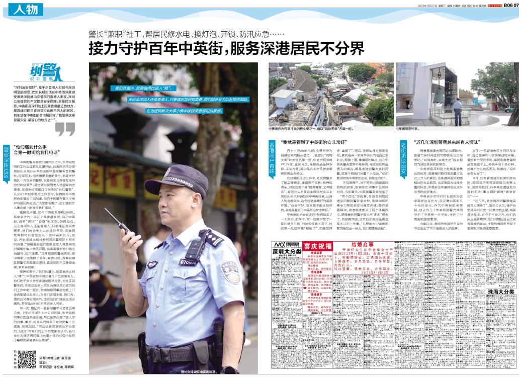 “深圳治安很好”,是不少香港人对现今深圳明显的感受。而对长期生活在中英街深度感受着港深两地治安情况的香港人来说,深圳公安提供的不仅仅是安全保障,更是民生服务。中英街是深圳陆上距离香港最近的地方,是