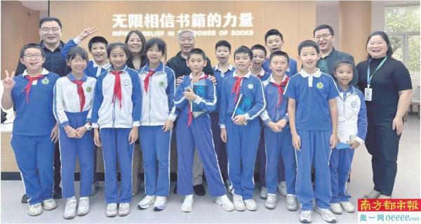 宝安区教科院唐宝成老师来校指导,参观新图书馆并与学校师生合影。