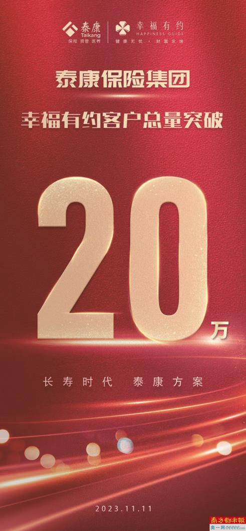 幸福有约客户数突破20万,意味着泰康人寿的地位早已举足轻重。“幸福有约”和泰康由此开创的商业模式,在这十一年中也得到了市场的认可,并且也将继续经受时代的更多考验。希望,未来在中国人身保险市场做强的过程中,能看到更多类似的具有中国基因的商业模式创新,更积极有效地融入到国家应对人口老龄化的战略中。 推广