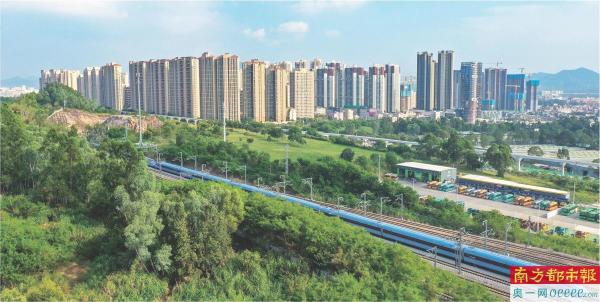 高铁列车驶过坪山。 朱洪波 摄