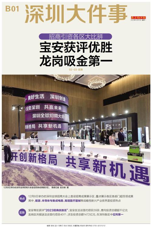 热点 12月8日举办的深圳全球招商大会上首设招商成果展示区,重点展示各区各部门超百项成果 其中,能源、半导体与集成电路、高端医疗器械等战略性新兴产业依然是投资热点 区势 宝安等区获评“20