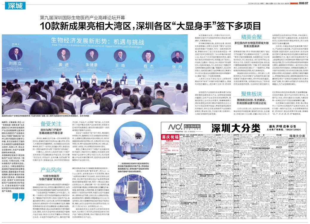 南都讯 记者谢萌 昨日,以“生物制造·创新未来”为主题的2023年深圳生物医药产业活动周暨第九届深圳国际生物医药产业高峰论坛(以下简称“高峰论坛”)在坪山燕子湖国际会展中心开幕。本次论坛吸引了国内